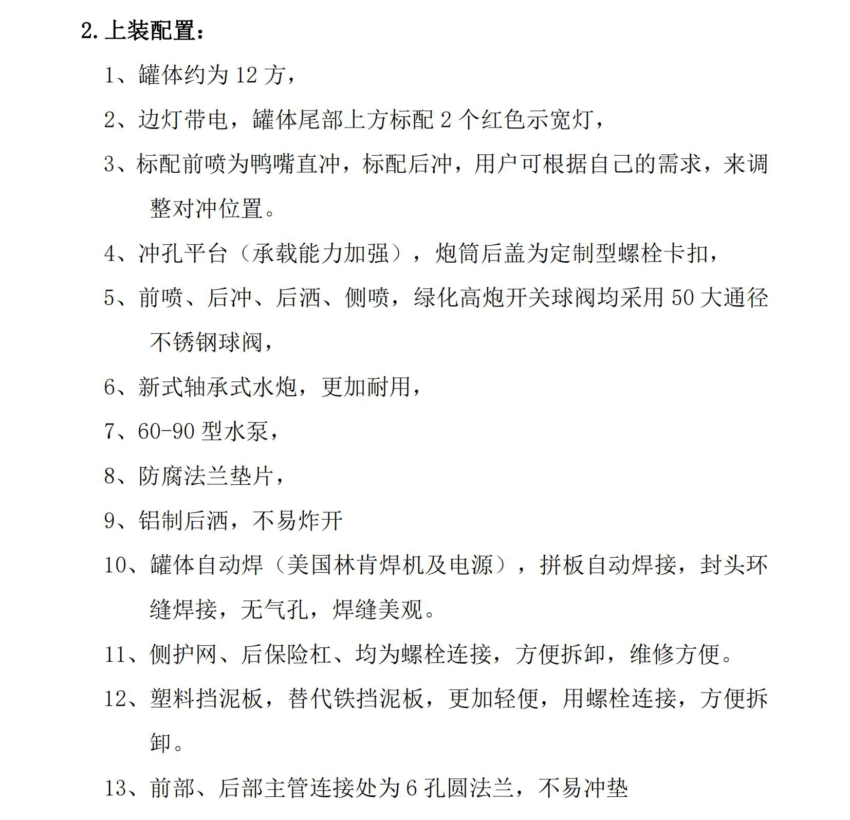 所属型号 12-16方洒水车