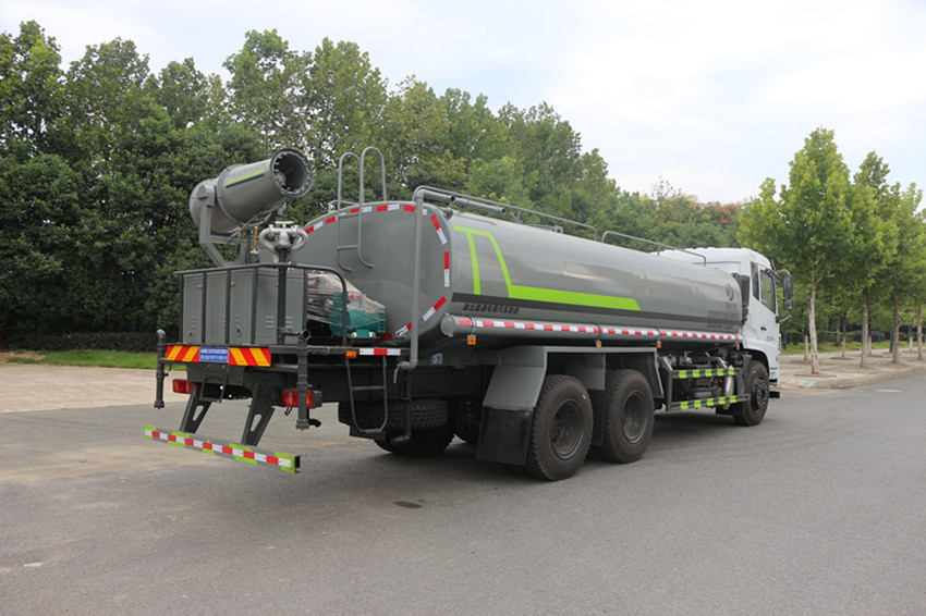 二.产品配置 1.底盘配置: 发动机玉柴 245 马力(六缸),大同 10 档变速箱,前桥 5 吨, 双 10 吨后桥,11.00 钢丝胎,轴距 4350+1350,断气刹,ABS,空调, 气囊座椅,电动玻璃,中控锁,行驶记录仪,多功能方向盘2.上装配置: 1、罐体约为 22 方,可加装 30-40 型雾炮 2、边灯带电,罐体尾部上方标配 2 个红色示宽灯, 3、标配前喷为鸭嘴直冲,标配后冲,用户可根据自己的需求,来调 整对冲位置。 4、花纹防滑平台,炮筒后盖为定制型螺栓卡扣, 5、前喷、后冲、后洒、侧喷,绿化高炮开关球阀均采用 50 大通经 不锈钢球阀, 6、新式轴承式水炮,更加耐用, 7、60-90 型水泵, 8、防腐法兰垫片, 9、铝制后洒,不易炸开 10、罐体自动焊(美国林肯焊机及电源),拼板自动焊接,封头环 缝焊接,无气孔,焊缝美观。 11、侧护网、后保险杠、均为螺栓连接,方便拆卸,维修方便。 12、塑料挡泥板,替代铁挡泥板,更加轻便,用螺栓连接,方便拆 卸。 13、前部、后部主管连接处为 6 孔圆法兰,不易冲垫
