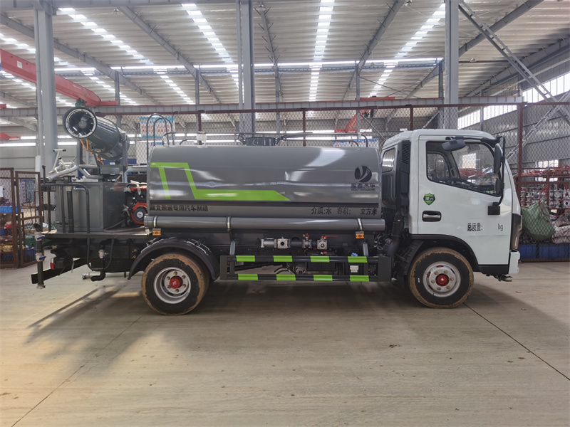 东风蓝牌洒水车配置:采用东风洒水车原厂底盘,罐体有效容积5立方,蓝牌,700R16钢丝胎,万里扬5挡变速箱,原厂空调,ABS,气动刹车,多功能方向盘,配全柴115匹马力国六发动机,配30型号雾炮,配8千瓦发电机组,雾炮可以遥控操作